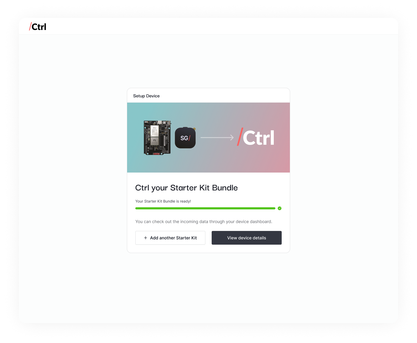 From here on, Ctrl will be best used on a PC environment. You can continue your IoT journey by either programming your F1 Starter Kit or configuring your dashboards.